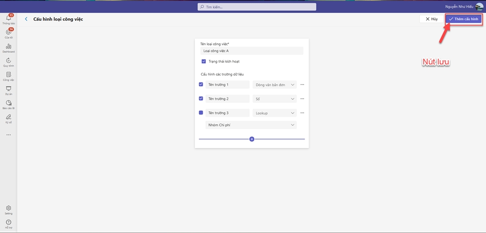 Bước 4: Nhập thông tin cho các trường dữ liệu của Loại công việc: