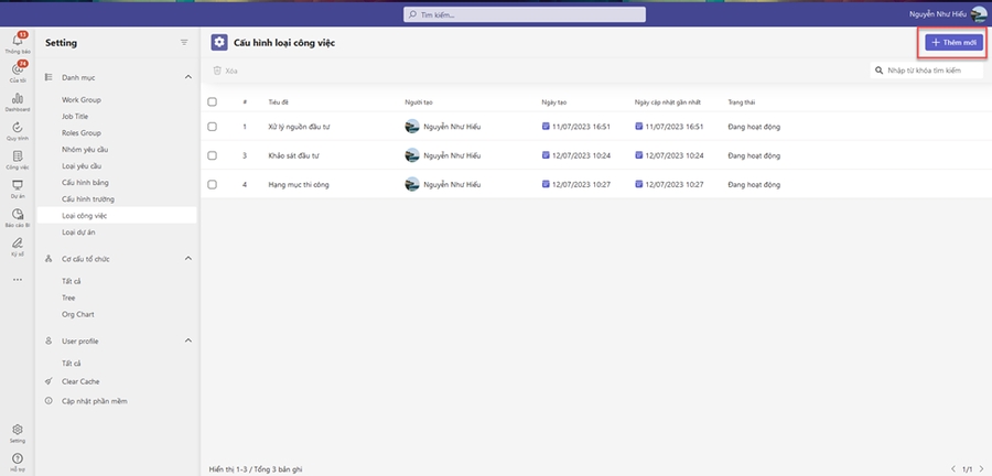 Bước 8: Trong danh sách Cấu hình loại công việc, loại công việc mới thêm đã hiển thị thêm trong danh sách