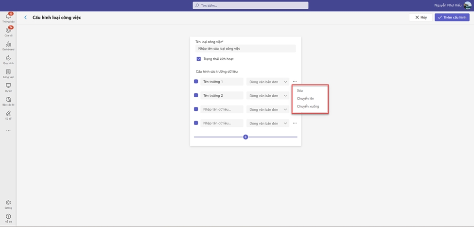 Bước 4: Màn hình hiển thị cấu hình loại công việc: