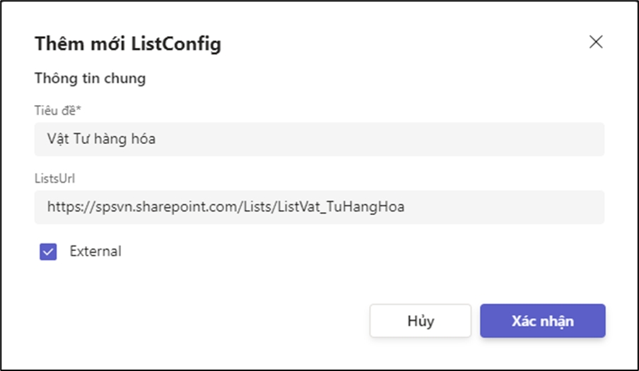 Option 1: List mới tạo hoặc list có sẵn trên cùng một site SharePoint Online: Copy tên list và thêm vào ListsURL