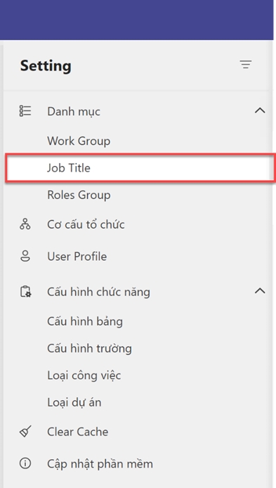 Job Title - Chức vụ/ chức danh của một user: Hiển thị cùng với tên người dùng, dùng để dễ dàng phân biệt khi chọn người xử lý trong quy trình, công việc.