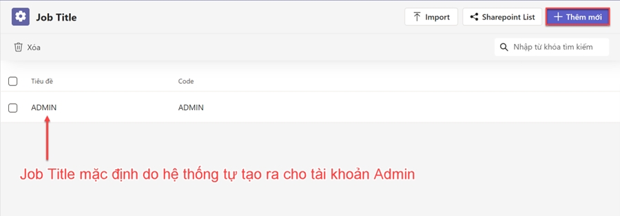 Bước 2: Chọn <+ Thêm mới> để thêm mới 1 JobTitle