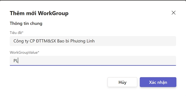 Chú ý: Danh sách workgroup đươc thiếp lập tương ứng với các cửa hàng/chi nhánh/ Công ty thành viên theo cơ cấu tổ chức của tổ chức, hạn chế việc thay đổi