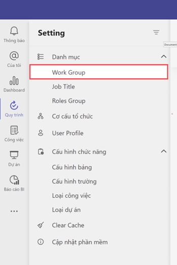 Work Group - Nhóm làm việc: WorkGroup phục vụ cho việc phân luồng xử lý chính xác. Trong một tổ chức có nhiều công ty thành viên, trong các công ty thành viên có các phòng ban tương tự, WorkGroup giúp cho các luồng của quy trình công việc được đi đúng đến user của công ty tương ứng mà không bị nhầm lẫn sang công ty thành viên khác.