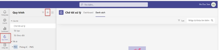 Bước 2: Chọn <Quy trình>, nhấn <+>