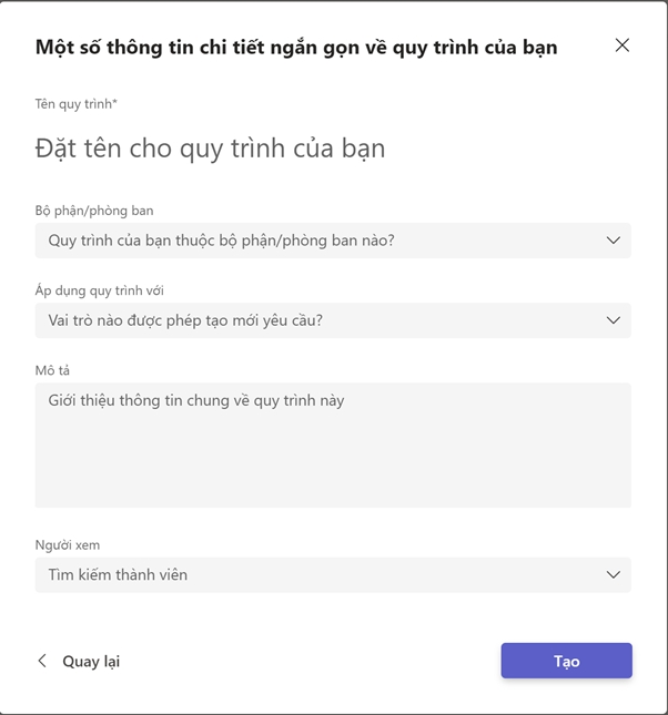 Bước 3: Nhập các thông tin chung định nghĩa quy trình