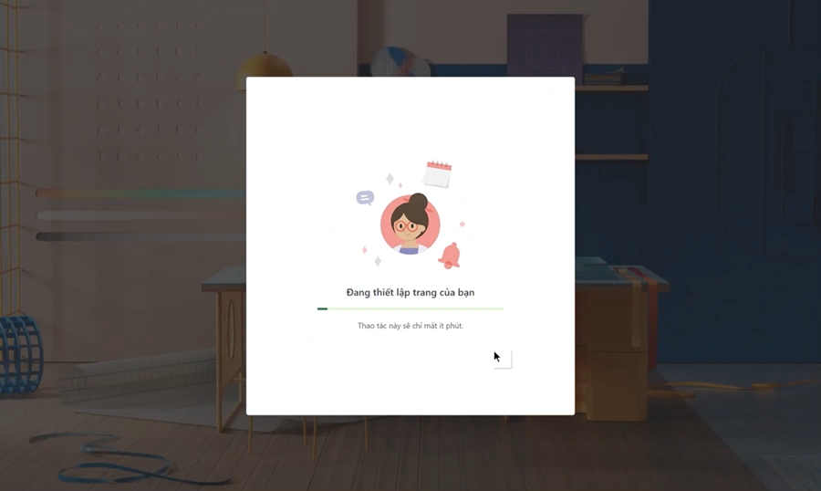 Bước 6: Màn hình chờ thiết lập trang trong khoảng vài phút (phụ thuộc vào tốc độ mạng)