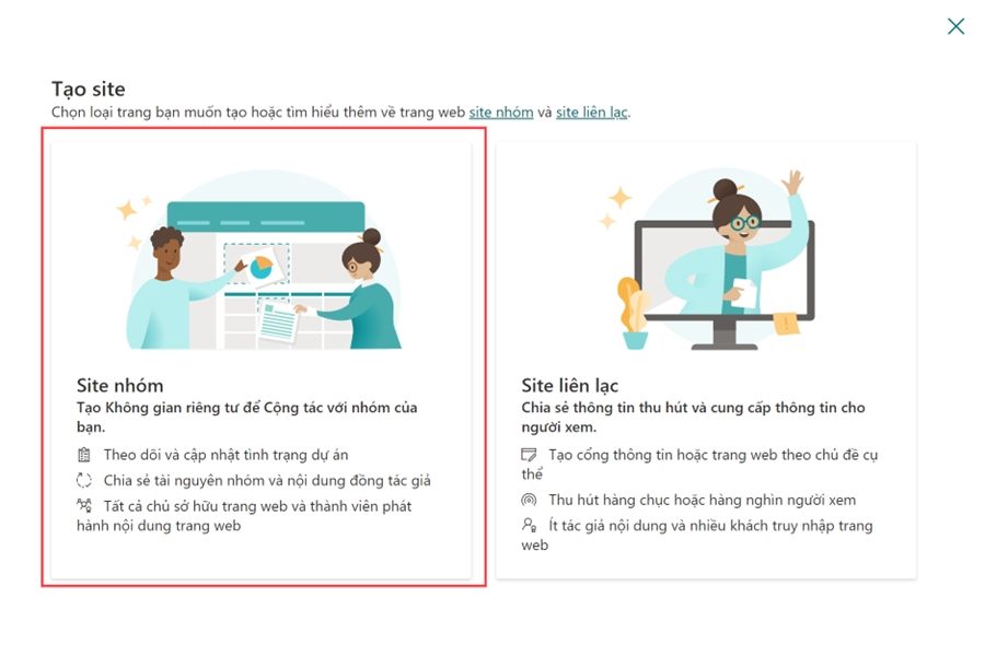 Bước 3: Sau khi truy cập vào SharePoint, chọn + Tạo site