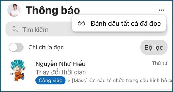 - Đánh dấu tất cả thông báo là đã đọc