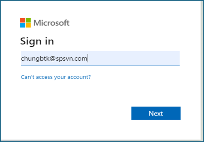 b. Bấm truy cập và thực hiện login với tài khoản Microsoft được cấp