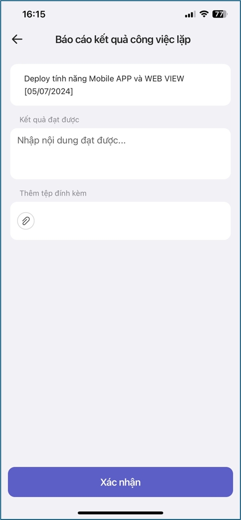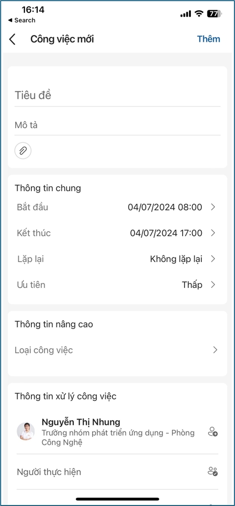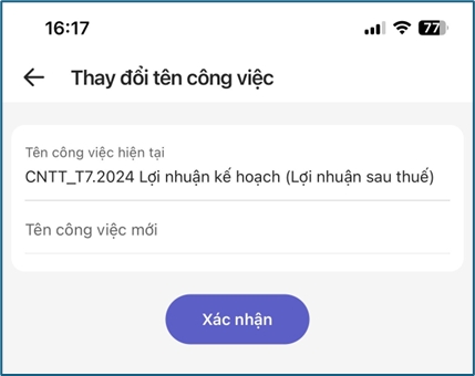 - Tại màn hình chi tiết công việc người dùng nhấp hoặc press in vào trường dữ liệu muốn chỉnh sửa thông tin