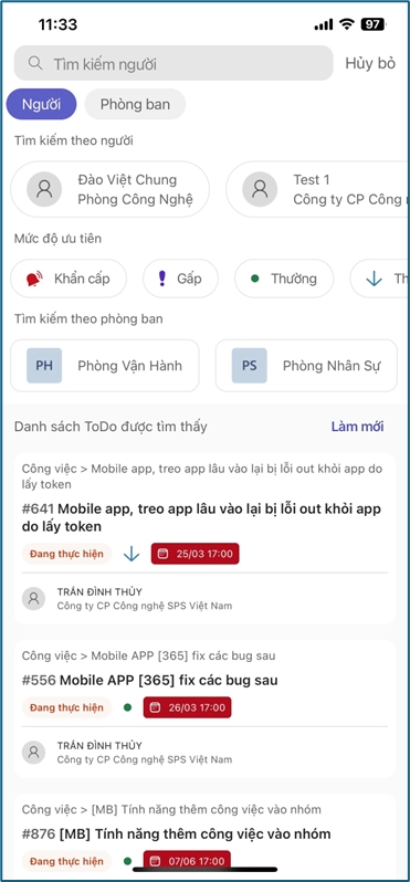 · Phòng ban: hệ thống hiển thị danh sách và người dùng có thể gõ tên để tìm kiếm chính xác phòng ban khởi tạo quy trình, dự án