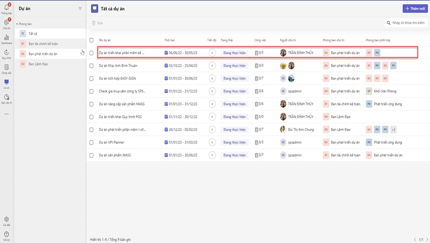 B1: Từ danh sách dự án, Chọn dự án cần thay đổi thông tin dự án