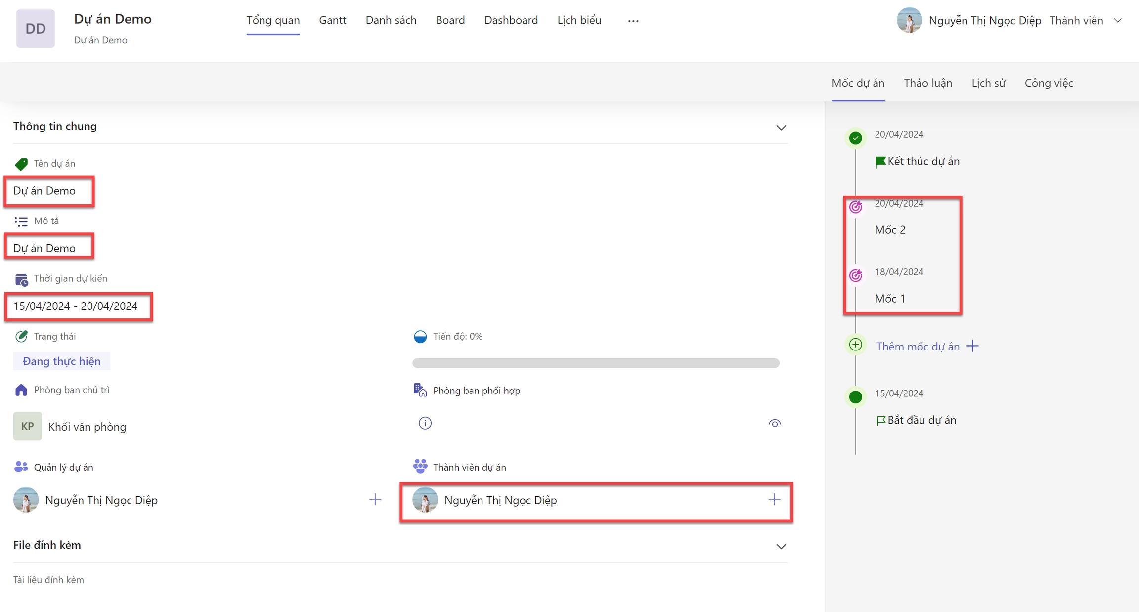- Các mốc tiến độ dự án: thay đổi các mốc tiến độ. Sau đó nhấn vào “Đóng” .