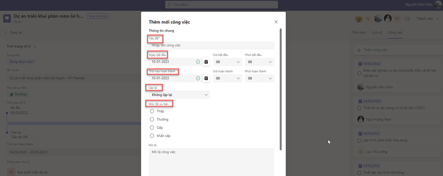 1. Thêm mới công việc đơn lẻ khi xem tổng quan: