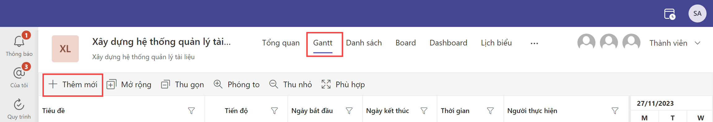 2. Thêm mới công việc đơn lẻ từ view Gantt và Danh sách: