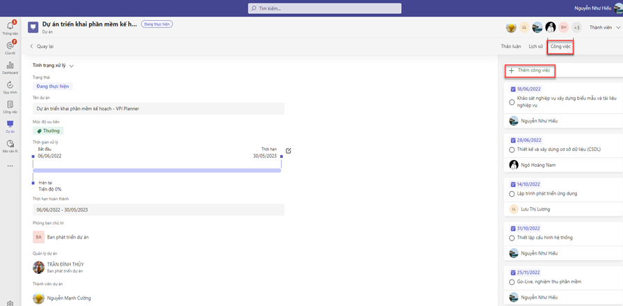 Mỗi dự án bao gồm nhiều công việc, để thêm các công việc vào dự án, ta có thể dùng 3 cách: