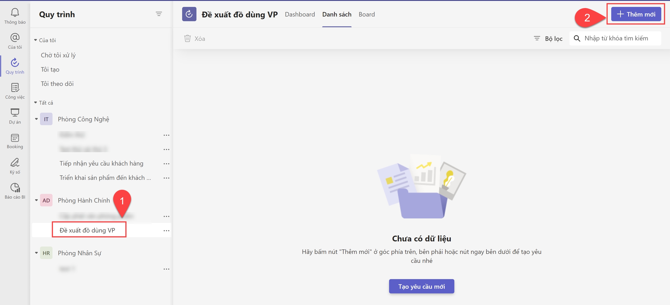 Bước 2: Chọn một Quy trình trong danh sách, nhấn < + Thêm mới>: