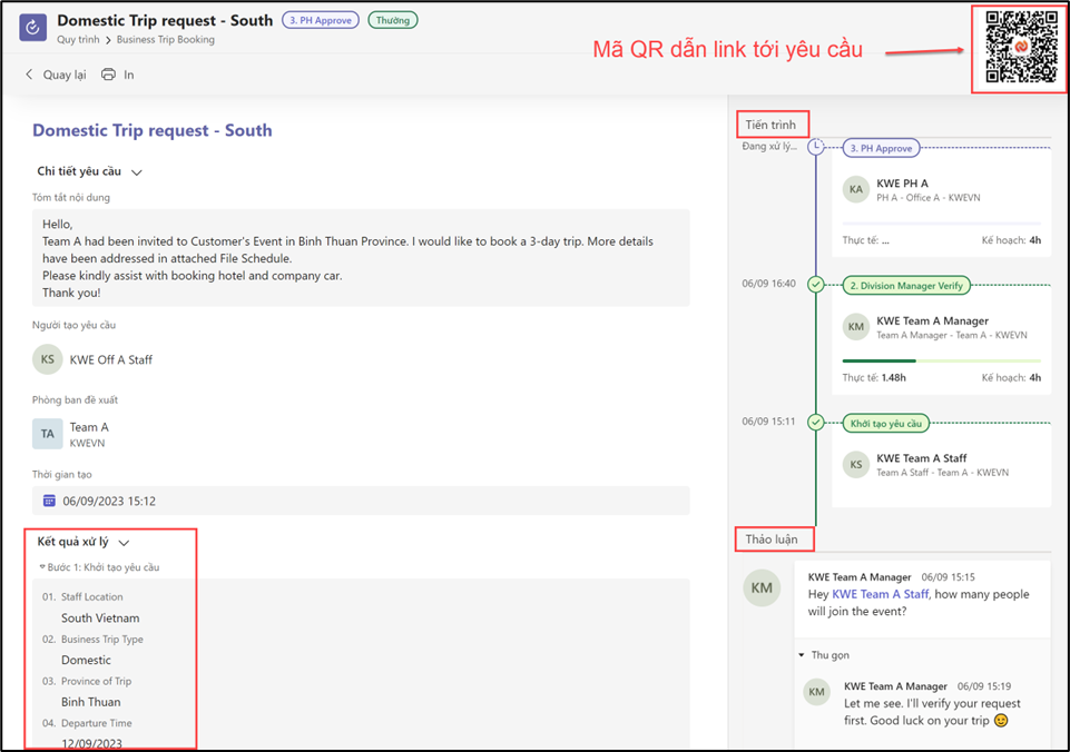 Khi cần thông tin của một yêu cầu dưới dạng bản cứng, người dùng có thể in các thông tin trong yêu cầu bằng cách sử dụng chức năng Preview in