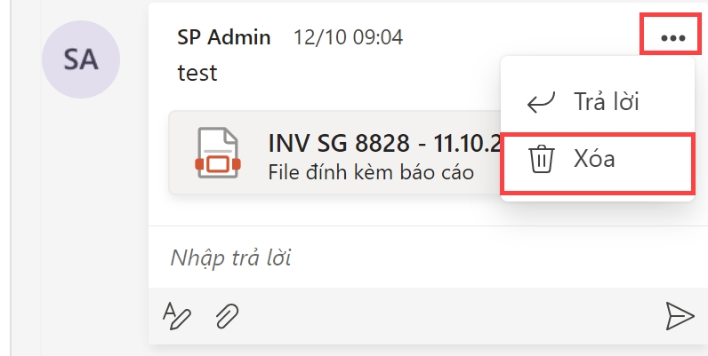 - Chọn biểu tượng tại thảo luận cần xóa, hệ thống hiển thị: