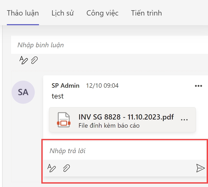 Chức năng Thảo luận cho phép người dùng trao đổi trực tiếp về các vấn đề của yêu cầu mà không cần phải sử dụng ứng dụng chat bên ngoài.