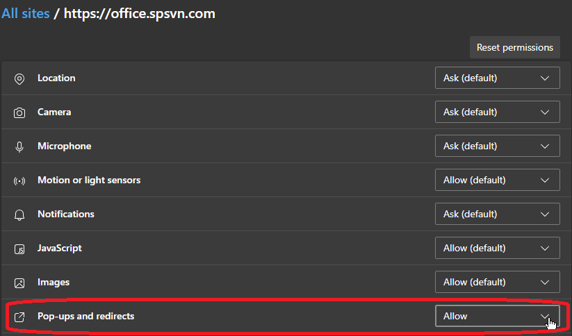 # Lỗi đăng nhập SP365 do trình duyệt chặn pop-up