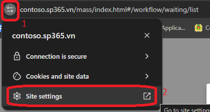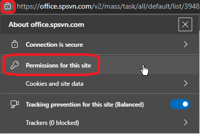 * Microsoft Edge: Vào "Permissions for this site"